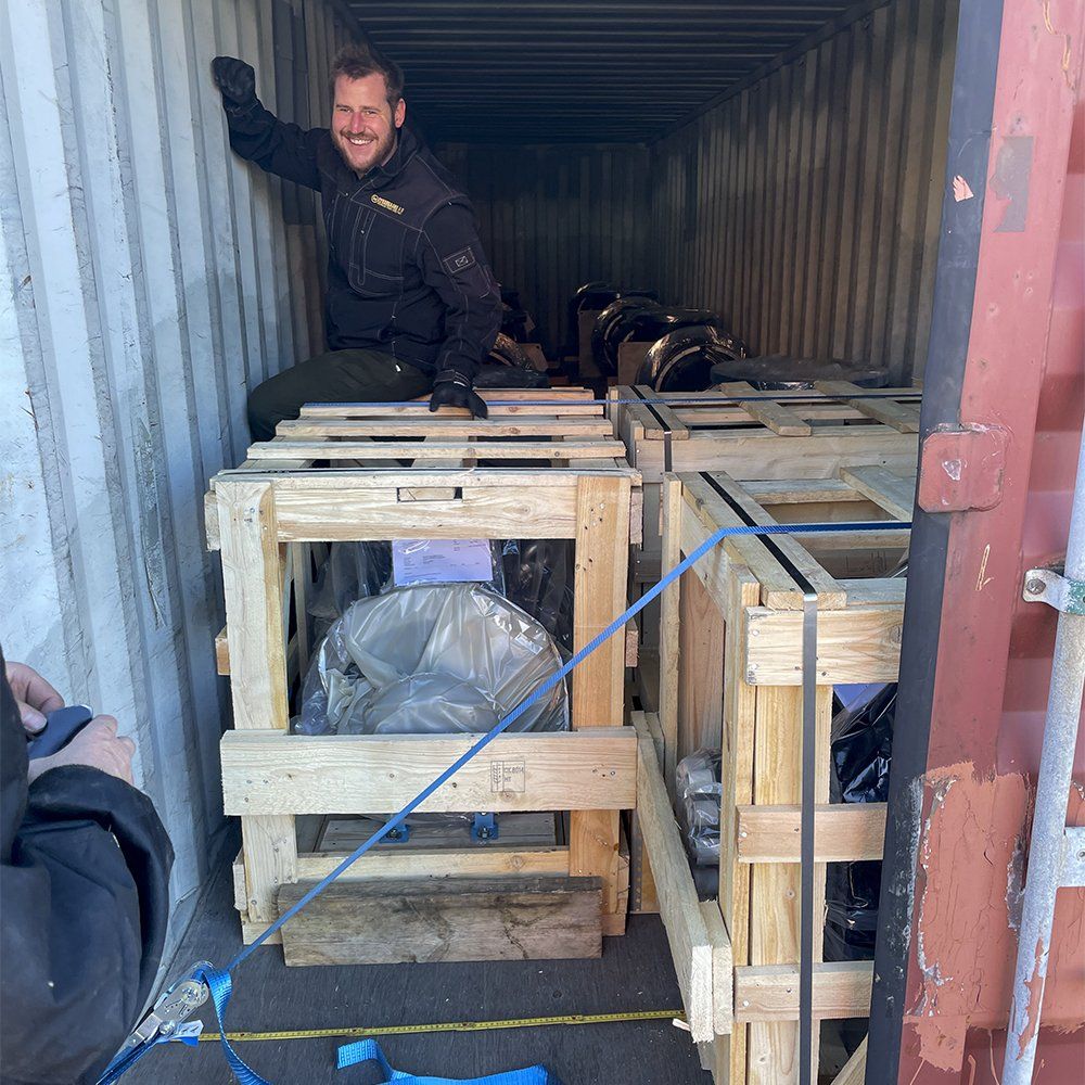 Before moving the pumps into the containers, we knew that the space was tight, and that we needed to be very careful and efficient to ensure that eight pumps and eight motors would fit.
