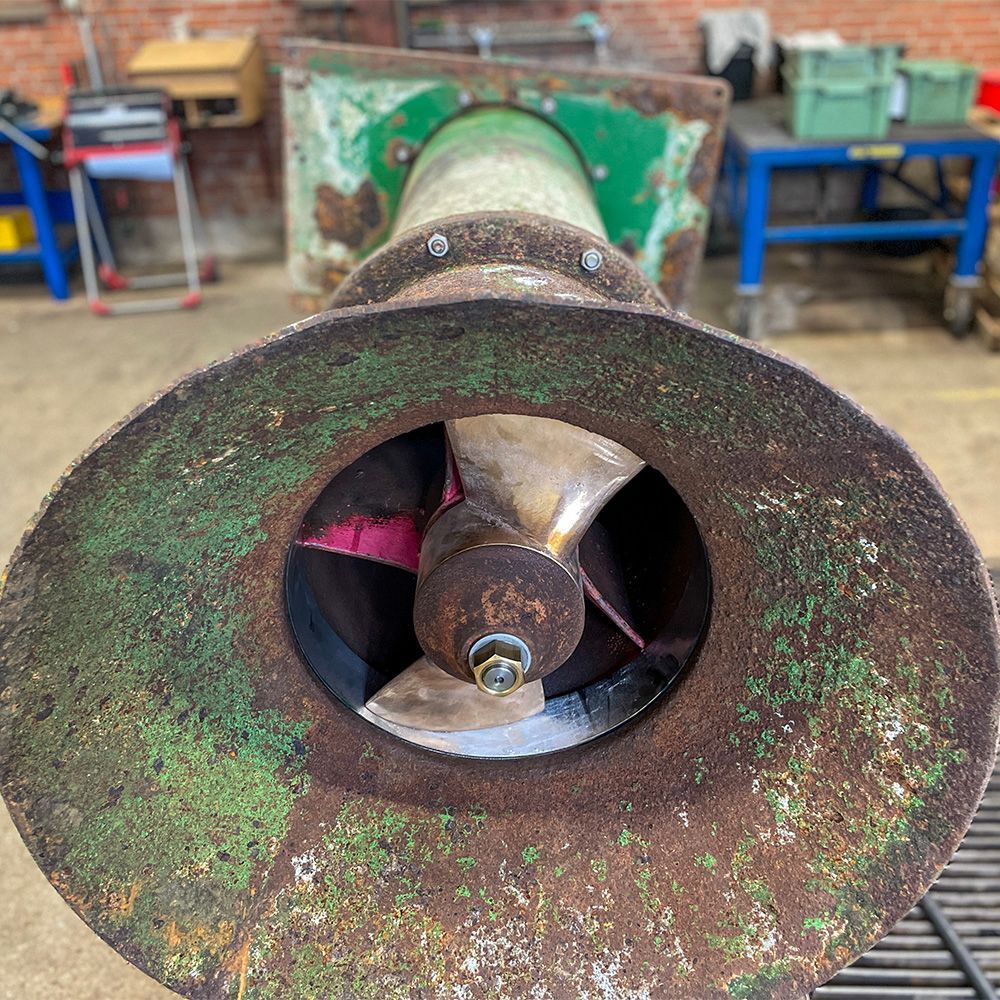 Now they have been back to the workshop for the first time and got a new axle and new propellers. The rest of the pumps have been checked, inspected and examined - and put back on the pump.