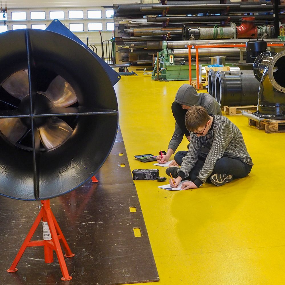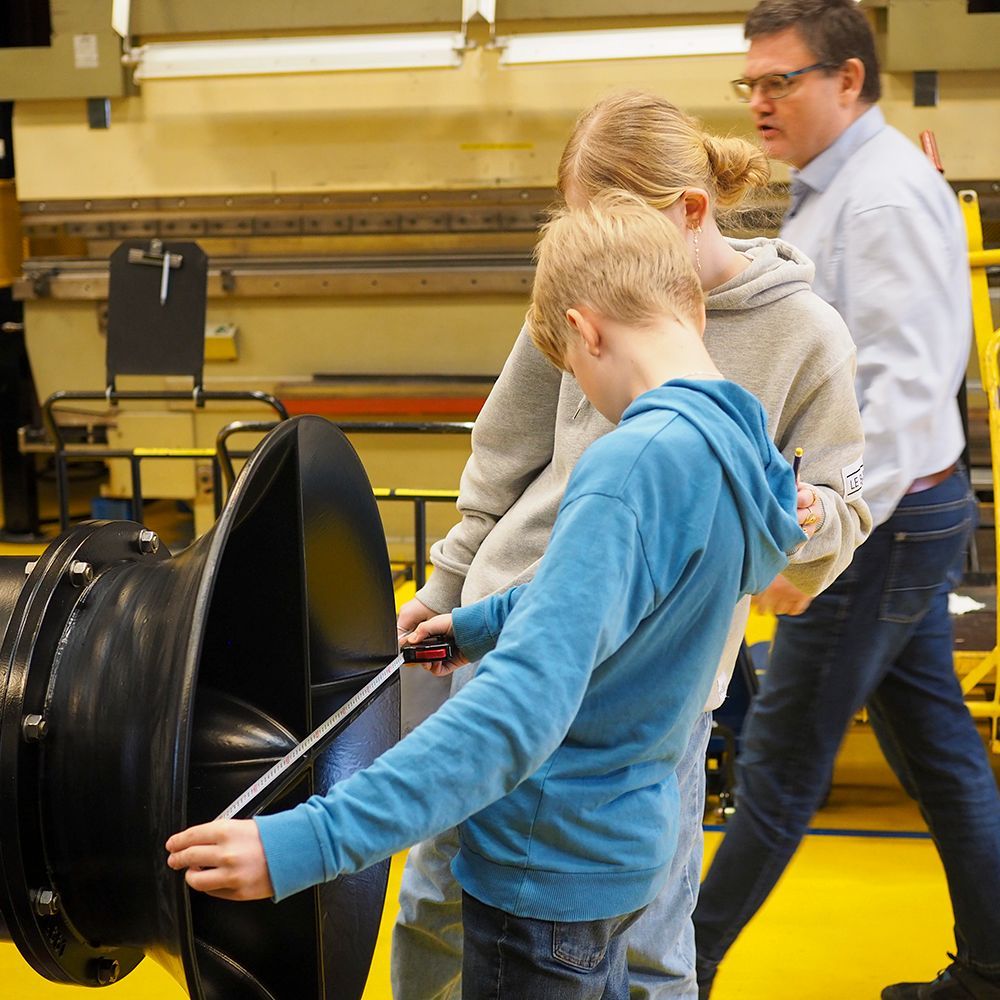 The 6th grade from Rolfsted Skole has moved a full day's teaching out at Lykkegaard Pumper. Here the students calculate geometics such as the area and volume of pumps, boxes and the entire warehouse - in addition to being shown around. This makes the teaching more real and gives the students an impression of what it is like to work at a company like Lykkegaard.